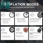 برای باد کردن محصول مورد نظر، می توانید بین 6 حالت فشار از پیش تعیین شده انتخاب کنید. فشار هوای مورد نظر را حرکت دهید یا وارد کنید. در مجموع 3 نازل مختلف در داخل بسته قرار داده شده است تا دستگاه های مختلف را باد کند. پمپ باد شیائومی کمپرسور هوا 2 MJCQB06QW دقت بالایی در اندازه گیری فشار هوا دارد و تا 1 psi می رسد. کمپرسور هوای شیائومی MJCQB06QW دارای حداکثر فشار هوا 150psi و حداقل 3psi است. پس از تکمیل فرآیند باد کردن، دستگاه به طور خودکار خاموش می شود. کمپرسور هوای شیائومی 2 MJCQB06QW اندازه گیری فشار هوا را بر اساس میله های پمپ هوا و واحدهای PSI نشان می دهد.