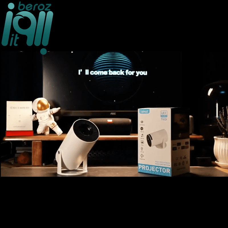 پروژکتور قابل حمل LED TK01 با روشنایی 120 لومن، رزولوشن Full HD و لنز چرخان ۱۸۰ درجه، تجربهای کامل از تماشای فیلم و ارائه را در فضای باز و بسته فراهم میکند.