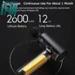 تفنگ ماساژ با ظرفیت باتری 2600 میلیآمپر ساعت بطور مداوم برای 5 ساعت کار میکند. پورت شارژ نیز از نوع USB-C است و به راحتی با کابل Type-C شارژ می شود.