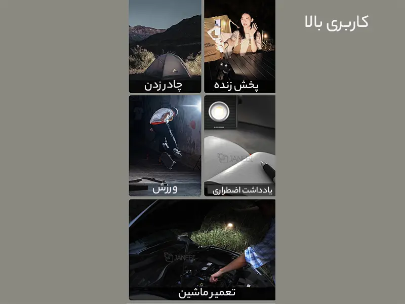 حداکثر روشنایی نور سفید 5.5 ساعت - حداقل روشنایی نور سفید 150 ساعت - حداکثر روشنایی چراغ قوه 15 ساعت - حداقل روشنایی چراغ قوه 200 ساعت